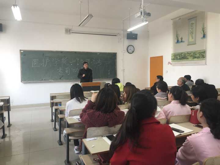 3月17日,医护学院在3206教室召开了技能高考培训专题会议,2018级班主任、培训教师、教学和学生工作管理人员及合作单位主要负责人参加了会议,会议由副院长吴鹏飞主持。