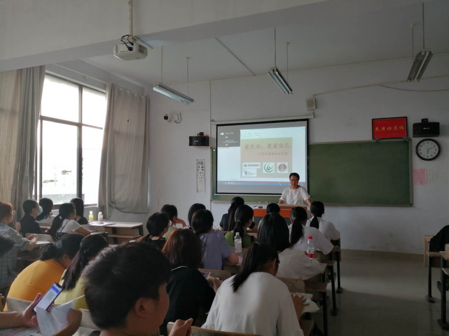 9月1日,魏老师以问卷调查的结果为基础,先后在3414、3417教室组织开展了以“爱生活,更爱自己”为主题的健康知识讲座,讲座围绕着提高疫情防控意识、养成良好饮食习惯、科学安排日常生活起居三个方面展开。现场气氛十分活跃,大家积极地展开讨论和交流。通过这次健康讲座,青少年的健康知识得到了提高,增强了自我保护意识,并认识到早睡早起,形成良好的饮食和生活习惯的重要性。