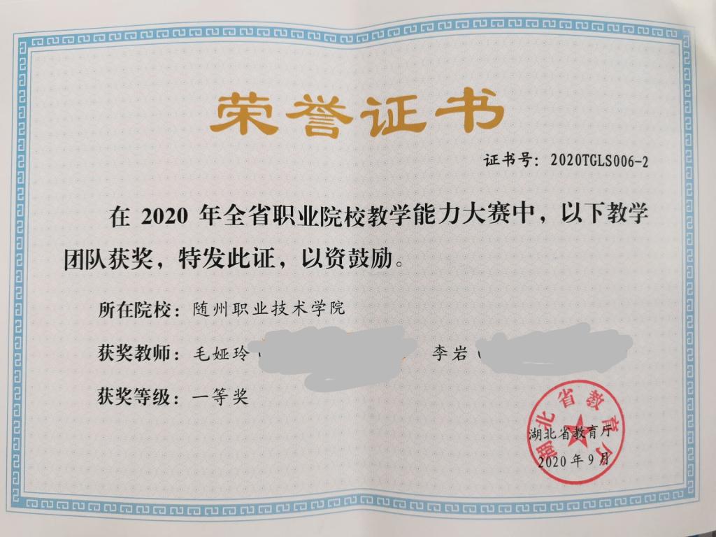在2020年全省职业院校教学能力大赛中,诸侯快讯足球官网入口毛娅玲、李岩教学团队代表诸侯快讯ok1122官网首次出征,获得省赛一等奖的好成绩,刷新了我校建校以来的历史,为学校赢得了荣誉,也为诸侯快讯足球官网入口增添了光彩。