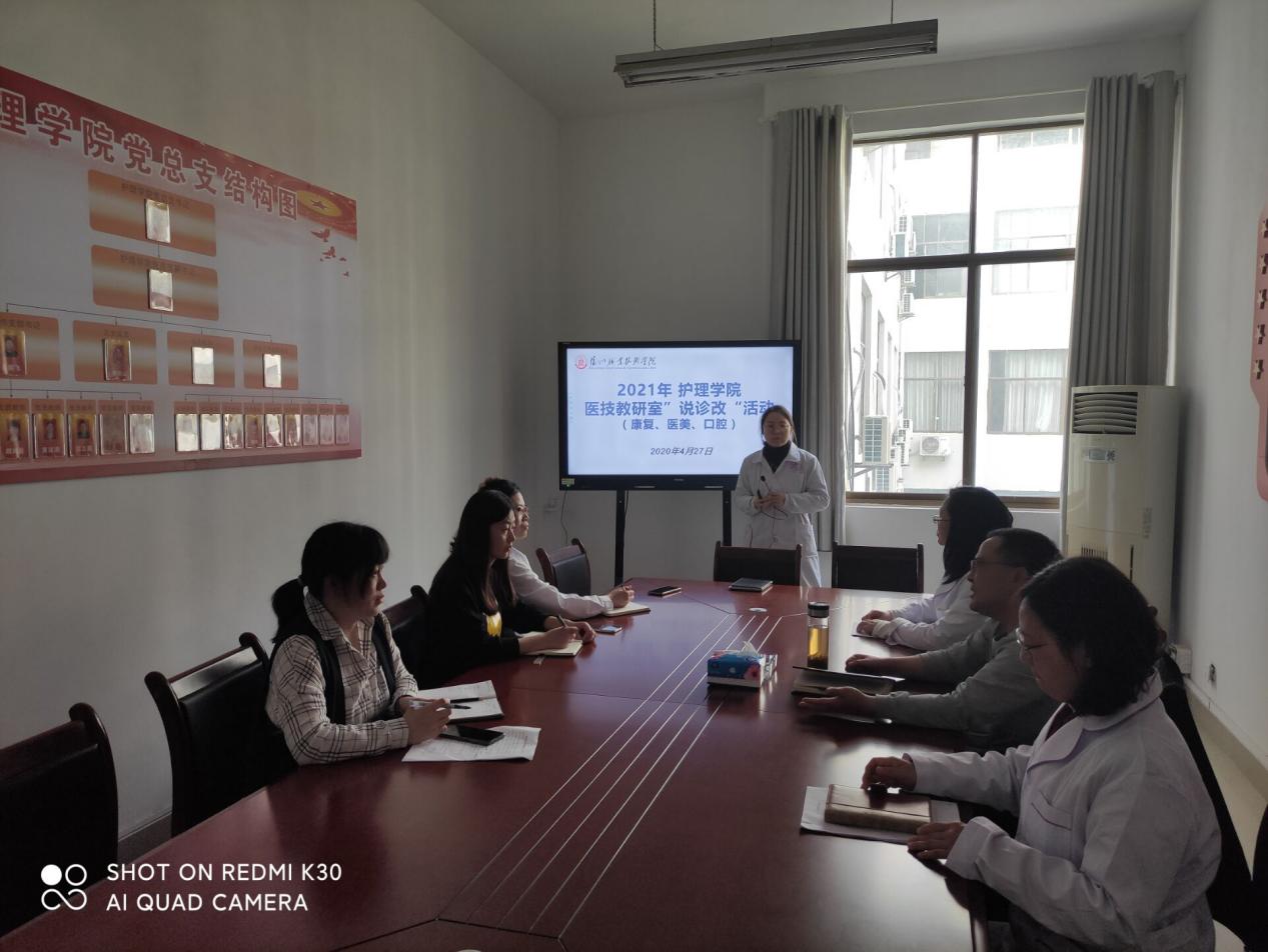 为响应学院质量处“说诊改”活动的号召,诸侯快讯足球官网入口医技教研室4月27日下午在3222开展三个层面说诊改汇报。诸侯快讯足球官网入口院长何宁同志、医技教研室主任及专任教师悉数参加,教师们分别从专业、课程、个人三个方面汇报总结2021年的诊改目标及质控项目,改进措施等。活动期间,何宁同志针对三个层面的内容与各位教师沟通,并提出了可实施可操作的诊改建议,教师们大受启发,收获颇多。