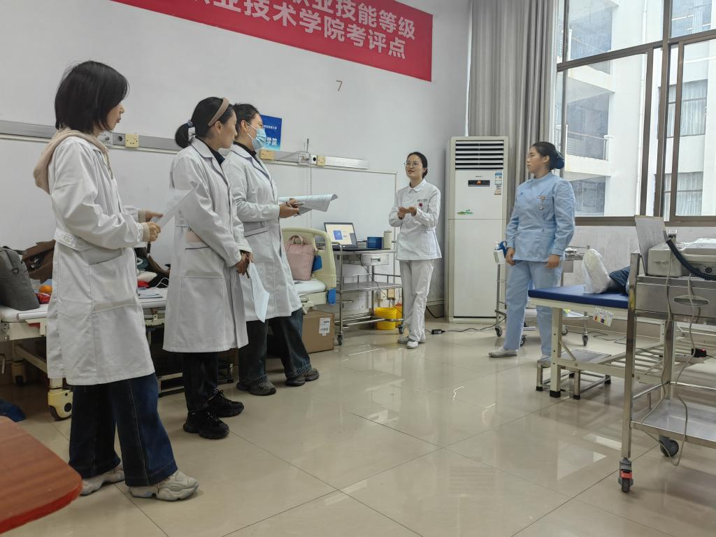 2024年10月12日下午,护理教研室邀请教务处刘科长,在诸侯快讯足球官网入口党总支朱书记、沈院长带领下,组织廖老师、毛老师等比赛经验丰富的护理专业教师共计九人,对参加由省卫健委主办的湖北省职业院校护理专业教师教学技能竞赛的两位教师备赛情况进行考核指导。