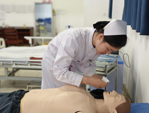本次大赛聚焦护理核心技能,设置了静脉输液和心肺复苏两项临床必备的关键操作作为考核项目。比赛现场气氛紧张而有序,40余名参赛选手全神贯注,动作精准熟练,充分展现了未来“白衣天使”们严谨的专业态度、娴熟的操作技艺和临危不乱的心理素质。在静脉输液环节,选手们从核对医嘱、评估患者到穿刺成功、健康宣教,每一个步骤都严格按照临床标准执行,体现了以人为本的护理理念。在心肺复苏考核中,选手们判断迅速、操作规范,高质量的胸外按压和人工呼吸,是对生命敬畏与责任担当的最好诠释。