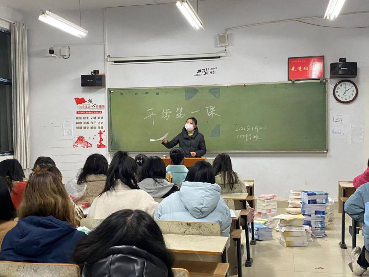 新学期是千帆竞发、百事待兴的新起点。上好“开学第一课”有助于督促学生收心、明确行为规范,以新的姿态投入新学期的学习生活。期待学生们在新学期的成长和进步!开展本次活动的主要内容是帮助学生过渡从假期到学校上课的不适应。让同学们的心回归在学习上,同时将本学期的任务也告诉了同学们,让同学们拟定好自己的目标,并以此为动力努力学习。再一个就针对目前防疫形势,本学期将继续落实晨午晚检体温监测及因病缺课跟踪记录,及各班班主任对学生要进行了新冠肺炎预防知识的讲解,教给学生们春季常见流行性疾病的预防知识,为防御新冠对学生实行封闭式管理。