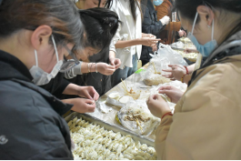 活动中不少同学是第一次包饺子,但是积极性仍然很高,他们与同学之间和食堂阿姨的交流后,学会了包饺子的方法,大家都左手托着饺子皮,右手拿着筷子夹着馅,再用手捏出形状,每个人都捏出了不同风格的饺子,情绪非常高涨,既热闹又温馨,学生们纷纷争先恐后,大显身手。后续煮饺子、调味料、吃饺子、清洗物品、收拾杂物、清理现场……各项活动井然有序,东华流水,叶落纷纭,荏苒的时间就这样在一阵的欢愉笑语中迎来了尾声,整个活动在愉快欢乐的气氛中结束。