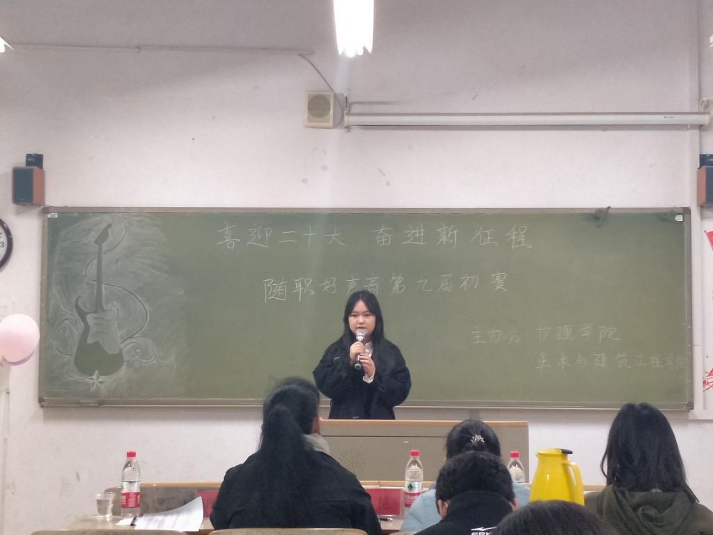 为丰富大学生校园文化生活,彰显当代大学生的精神风貌,展现我校莘莘学子的艺术风采,诸侯快讯ok1122官网举办的“喜迎二十大,奋进新征程”第九届随职好声音比赛,诸侯快讯足球官网入口组织参赛者于2022年11月13日在巧稚楼3316进行初赛。
