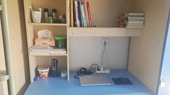 2、早上起床顺手整理床铺,衣物整齐摆放,无其他杂物摆放。