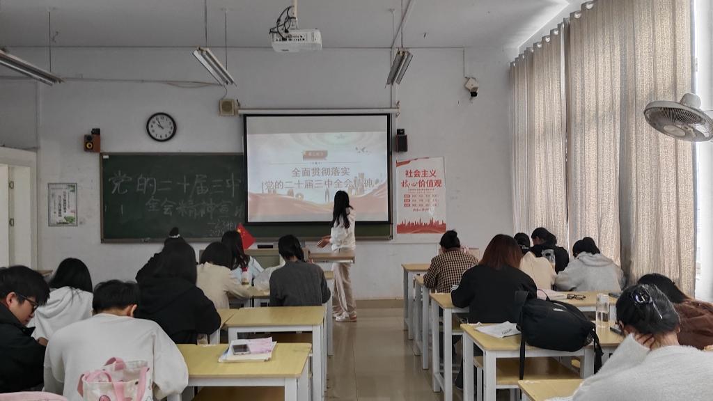 通过对“党的二十届三中全会精神”的学习,大家深入了解了会议的意义和内容,进一步坚定了对中国特色社会主义道路的信心和决心。在班会活动中,同学们就如何学习贯彻党的二十届三中全会精神展开了热烈讨论,大家纷纷表示要将学习成果转化为实际行动,积极投身到学习与生活实践中去,不负韶华,不负青春。