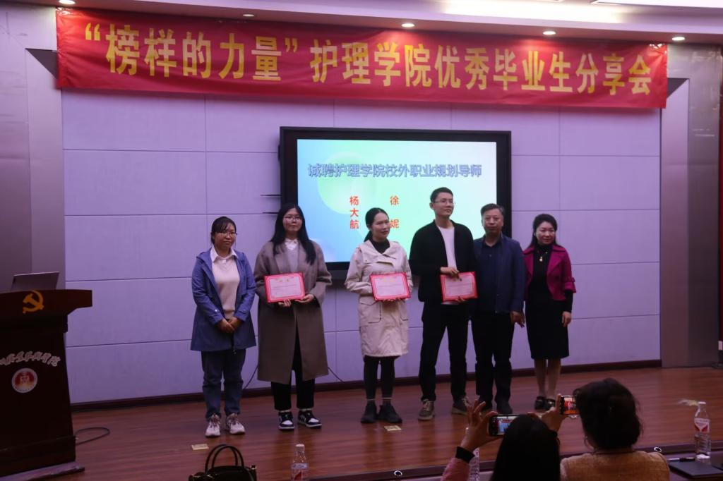为更好发挥优秀毕业生丰富的实践经验,还为三位优秀毕业生现场颁发“校外职业规划导师”聘书。