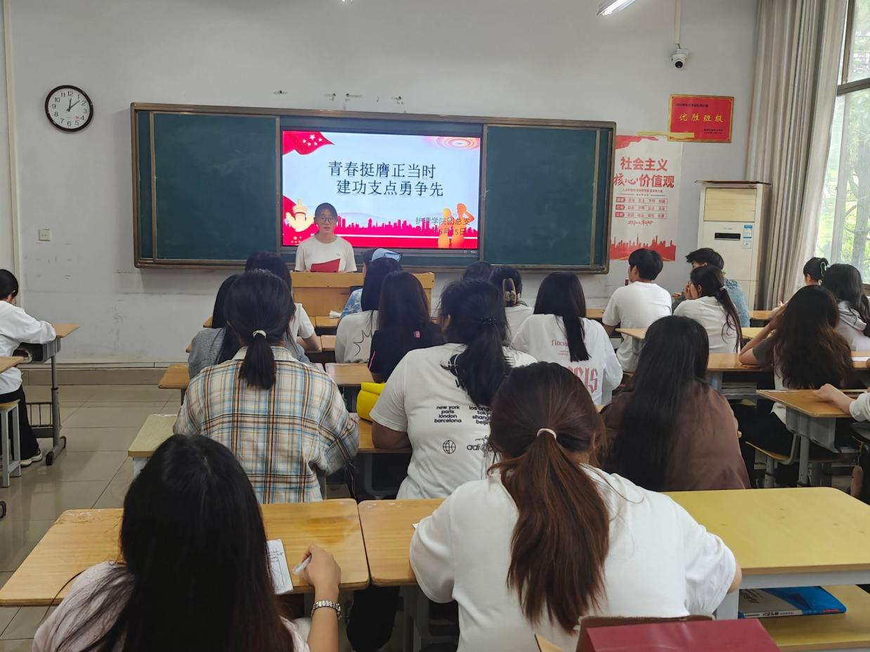 活动在激昂的团歌中拉开序幕,青春旋律瞬间点燃现场氛围。随后,全体参会人员共同观看“青年挺膺担当” 主题视频,通过榜样人物的事迹感受新时代青年的责任与力量。团总支成员袁蕊希以PPT讲解的形式,深入剖析“青年如何挺膺担当”,从理论到实践为在场青年指明行动方向,引发深思。