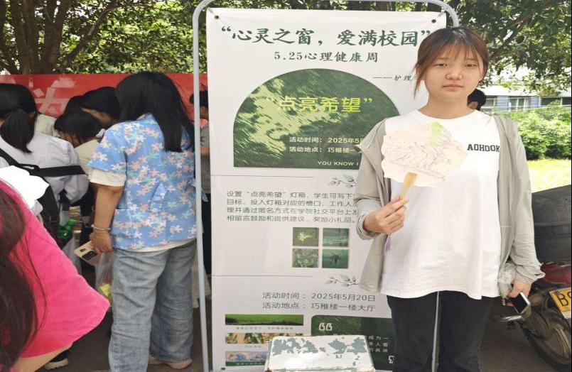 活动首日,“心密语”与“点亮希望”双线并行,在巧稚楼大厅铺展温暖底色。同学们以笔为舟,将心事轻诉于纸,折成精巧的工艺品;那些或轻盈或沉重的文字,在指尖的褶皱中化作无声的诗。另一侧,“点亮希望”灯箱前人头攒动:烦恼与梦想被投入光影之中,匿名分享与互动留言如星火闪烁,照亮彼此前行的路。纸与光的对话,让心事有了出口,也让温暖有了回响。