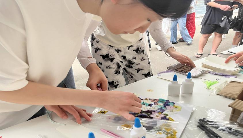 5月15日“干花溢彩,书签寄情”与“创艺舒心,手工筑梦”工作坊接力绽放。干花与书签相遇,定格自然之美与诗意遐想;奶油胶与发夹碰撞,迸发青春的创造力。指尖的忙碌驱散学业的压力,作品的诞生见证心灵的舒展。每一份手工,都是对自我的温柔对话;每一次分享,都是心窗透进的阳光。