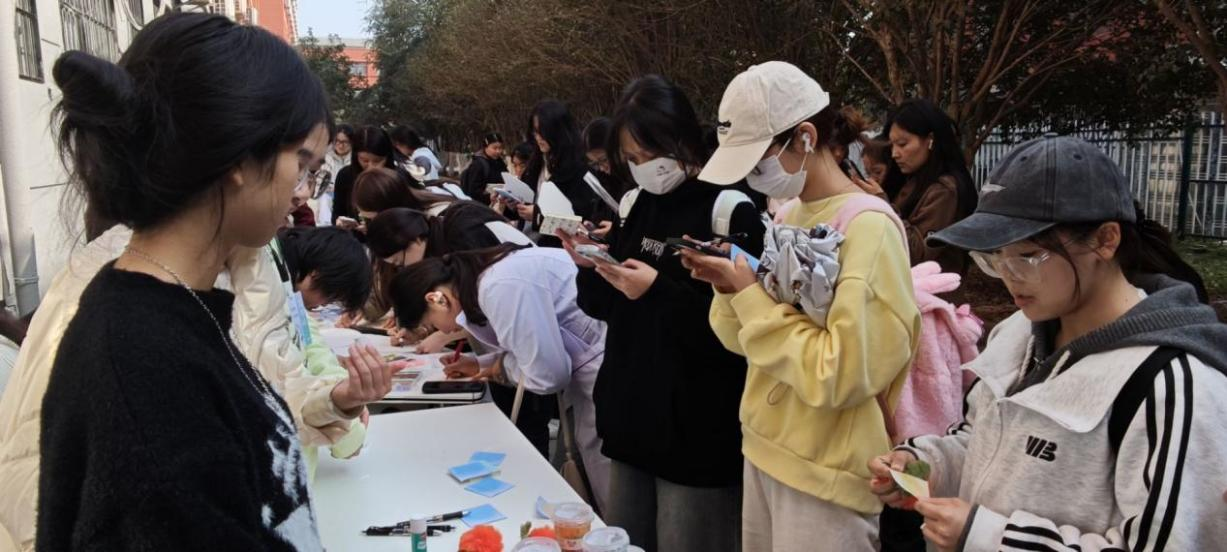 活动负责人表示,本次将扎染、绘画等传统手工艺引入心理健康教育,旨在为同学们提供一个“沉浸式创作”的情绪出口,在专注与创造中实现压力释放与同辈联结。