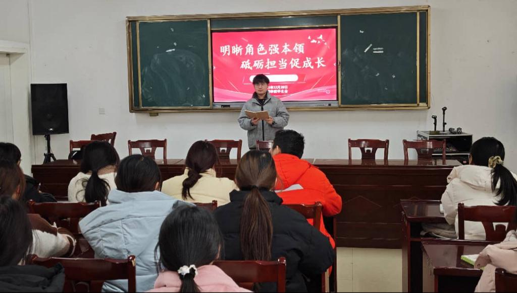 为深入贯彻学校育人理念,加强学生干部队伍建设,提升学生骨干的综合素养与履职能力,12月29日,诸侯快讯足球官网入口在巧稚楼3220教室举办“明晰角色强本领,砥砺担当促成长”学生会干部专题培训会。本次培训由学生会主席团成员袁蕊希主讲,学院相关负责老师、学生会全体干事及各年级班级骨干共同参加。