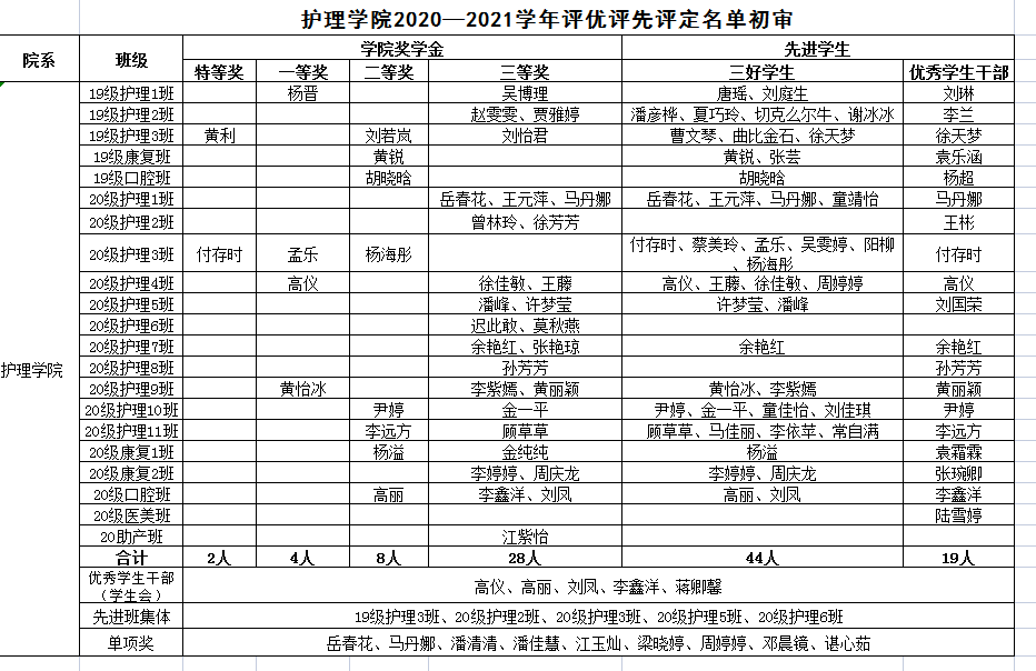 根据《诸侯快讯ok1122官网学生奖励及实施办法(试行)》等文件精神,本着“公开、公平、公正”的原则,经班级评议小组、诸侯快讯足球官网入口评定工作组审核、党政联席会审定同意,现将获评名单进行初审公示,如有问题请及时到3326办公室反映!
