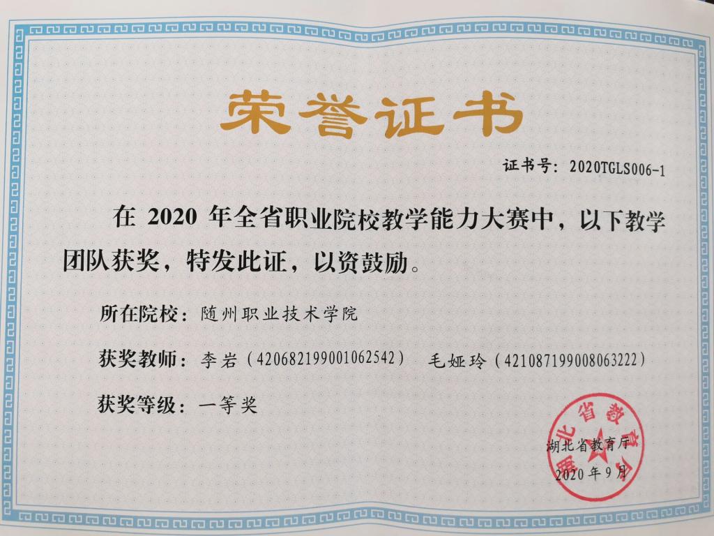 诸侯快讯足球官网入口团队喜获湖北省职业院校教学能力大赛一等奖