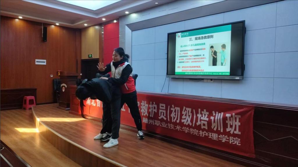 培训现场气氛高涨,老师们通过生动的教学技巧和丰富的实践经验,从心肺复苏术的操作要点,到伤口包扎的正确方法等内容,一一进行细致传授,使深奥的知识变得易于理解。同学们认真聆听,积极参与实际操作练习。大家两两一组,互相模拟急救场景,进行心肺复苏按压、三角巾包扎等操作练习。培训过程中,讲师认真纠正同学们操作的不规范之处,确保每一位同学都能熟练掌握相关技能。