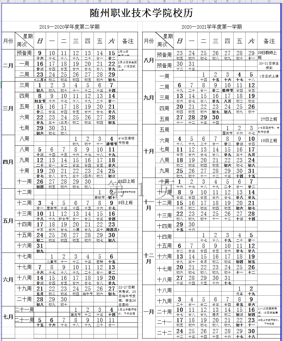 2020年校历