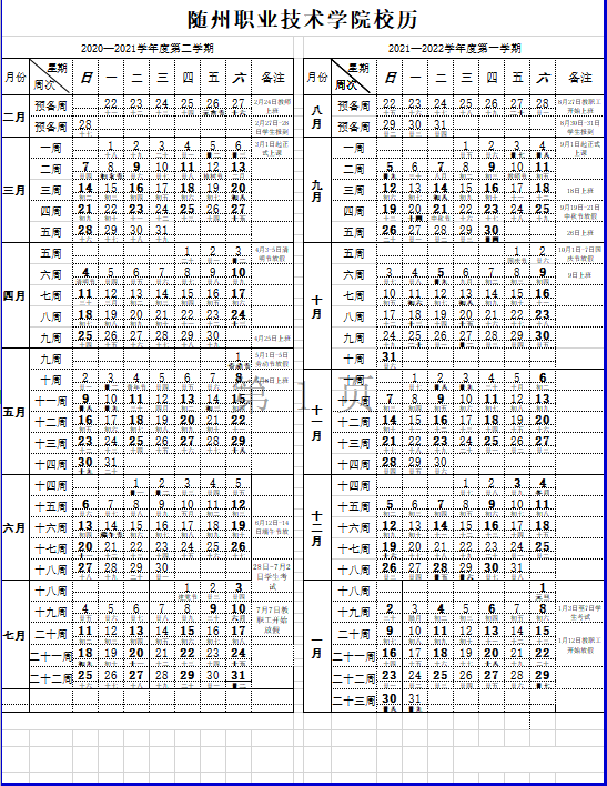 2021年校历(全年)