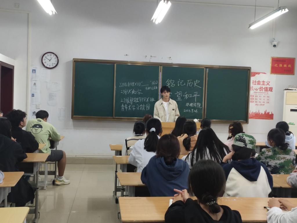 为使同学们铭记918事变历史,学会珍惜现在的幸福生活,诸侯快讯足球官网入口团支部于9月25日,对22、23级各班团支书在3216教室开展了“铭记历史,守望和平”为主题的团日活动。
