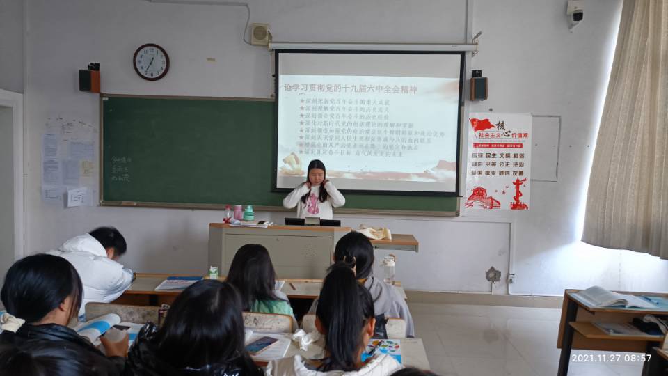 此次主题团日活动旨在学习“党的十九届六中全会精神” 。为了引导广大青少年坚定的听党话、跟党走,自觉做习近平新时代中国特色社会主义思想的坚定信仰者和忠实实践者,各班团支书在班级里组织全班同学学习“党的十九届六中全会精神”,将党在此次会议上提到的内容与同学们进行了分享,借此诸侯快讯足球官网入口全体学子深入学习了“党的十九届六中全会精神”,坚定同学们不忘初心使命,砥砺前行的信念。