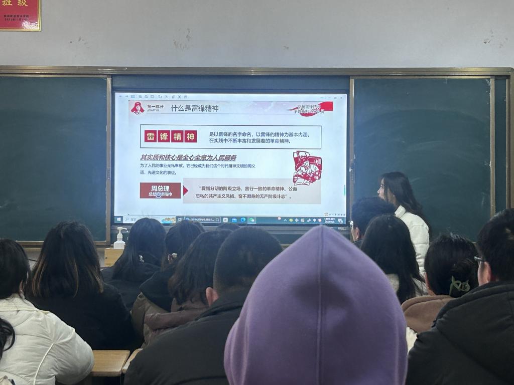 活动在嘹亮的国歌声中拉开序幕。主持人播放PPT向同学们介绍雷锋事迹和雷锋精神,呼吁每一个同学都要积极的参与到志愿服务的事业中来,要时刻以“奉献、友爱、互助、进步”作为行动宗旨,弘扬雷锋精神,争做新时代新青年。教师代表和学生代表也分别进行发言,表示会谨记雷锋精神,砥砺前行,成为新一代雷锋精神的传播者。