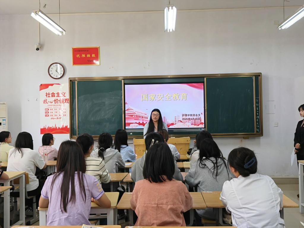 团总支负责人王婧祎通过案例剖析、故事讲述等多种形式,生动展现了我国政治安全、经济安全、文化安全、国土安全、社会安全等多方面的安全内容,以鲜活的案例引导广大师生认真学习国家安全知识,希望大家在今后的学习工作生活中要心系国家安全,牢固树立社会主义核心价值观,积极做国家安全的学习者、宣传者和践行者。她鼓励同学们要树立总体国家安全观,提高防范意识,积极参与到维护国家安全的行动中。从身边小事做起,如谨慎对待网络信息、增强保密意识等。