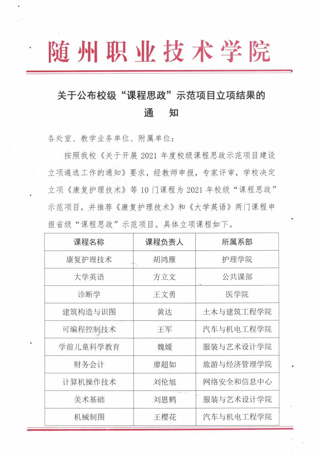 诸侯快讯足球官网入口大力推动以“课程思政”为目标的课堂教学改革,优化课程设置,修订专业教材,完善教学设计,加强教学管理,辅导员密切配合专业教师,共同梳理各门专业课所蕴含的思想政治教育元素和所承载的思想政治教育功能,并将其融入课堂教学各环节,如在《护理学基础》课程中融入“敬佑生命、救死扶伤、甘于奉献、大爱无疆”的抗疫精神,在《康复护理技术》课程中融入“大医精诚、医者仁心”的职业道德。思想政治教育元素在教学环节的融入,不仅提高了原本晦涩难懂专业课程的吸引力和兴趣性,又有效地开展了隐性思想政治教育。近年来,学院“课程思政”教学改革也展现了一定成果,2021年《康复护理技术》课程被评为校级课程思政项目,2022年通过验收。